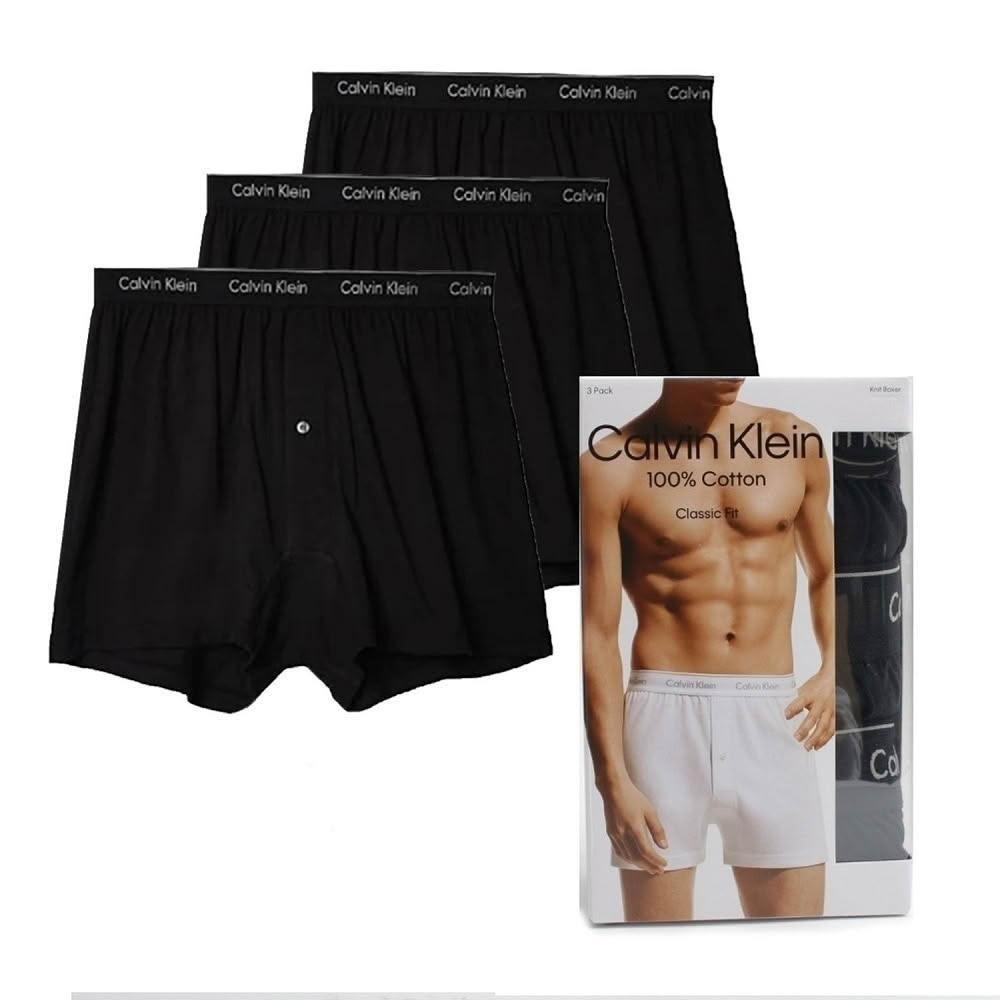 CALVIN KLEINCK 凱文克萊 男士純棉經典針織平角內褲 前開式鈕扣 四角褲 內褲 黑色(3件組)