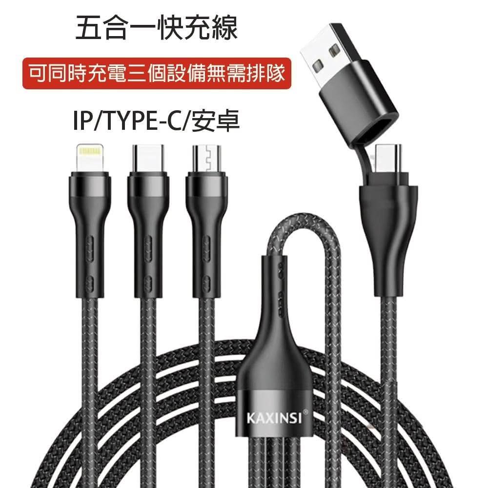 五合一編織充電線 PD快充 快充線 編織線 安卓線 蘋果充電線 Type C USB充電線(充電線/快充線)