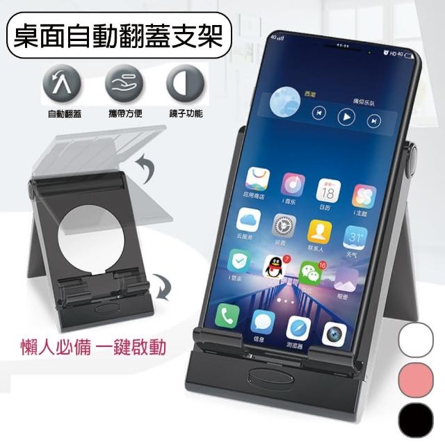 二合一 自動翻蓋手機支架 鏡子支架 摺疊手機支架 多功能支架 懶人手機支架 手機支架 支架 懶人支架