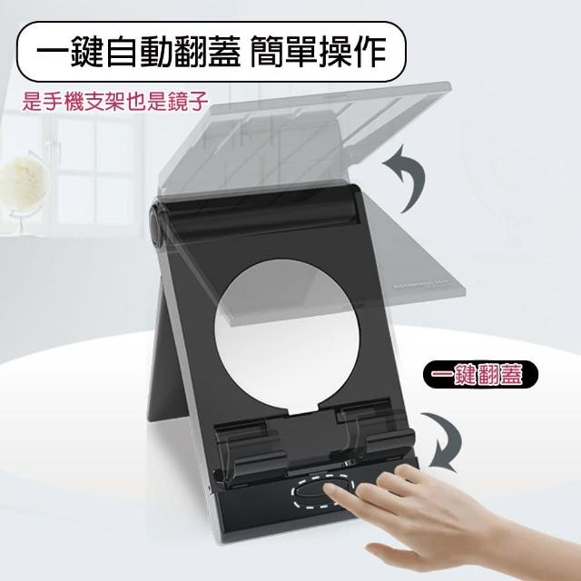 二合一 自動翻蓋手機支架 鏡子支架 摺疊手機支架 多功能支架 懶人手機支架 手機支架 支架 懶人支架