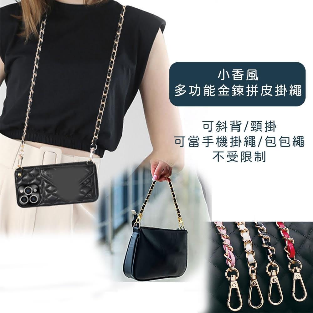 可拆式 多功能 手機掛繩 小香風 金鍊拼皮鏈條 手機背帶 Apple/安卓 掛繩 手機殼掛繩 吊飾 包包繩