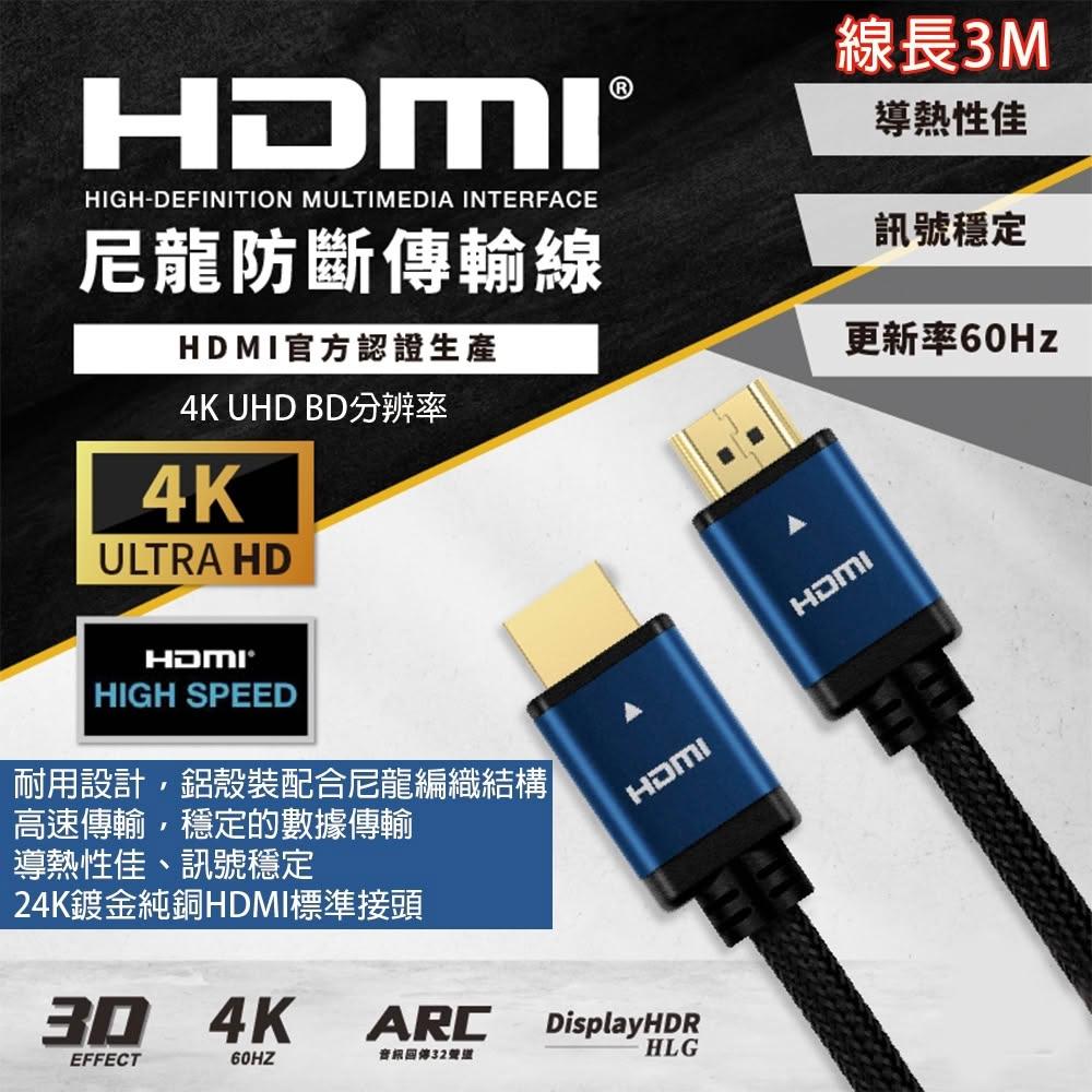 4K影音尼龍防斷傳輸線 HDMI影音傳輸線 HDTV 高清線 8K線 4K線 HDMI延長線 3米