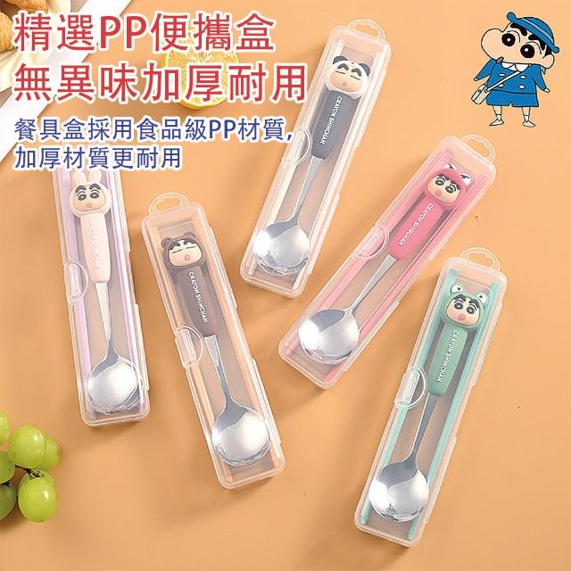 HongXin不銹鋼304餐具組 湯匙筷子套裝便捷餐具 卡通造型餐具 不鏽鋼湯匙 蠟筆小新餐具組