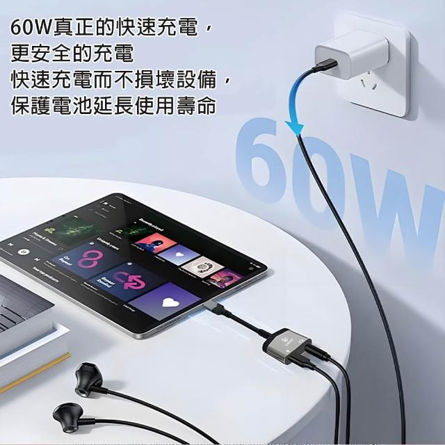TYPE-C to 3.5mm一分二轉接頭 轉接線 外接音響 可充電