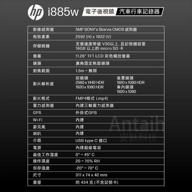 HP 惠普HP i885W 3年保固 64G 2K 雙鏡頭 電子後視鏡 三錄 WIFI GPS 區間測速 破盤王