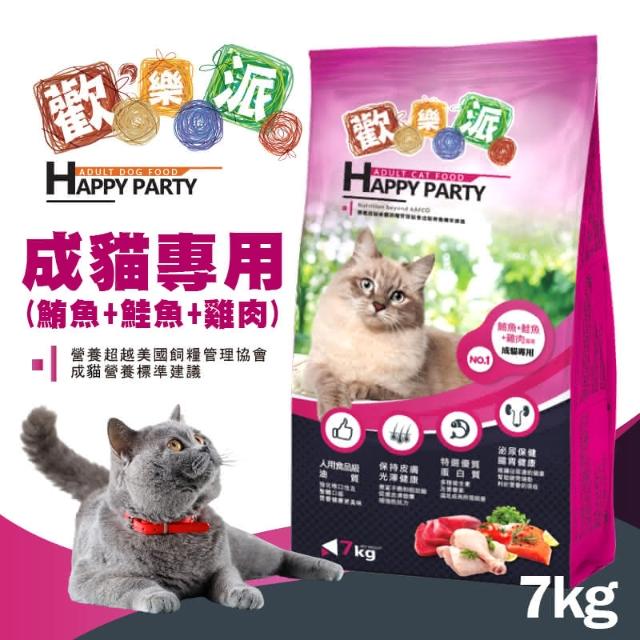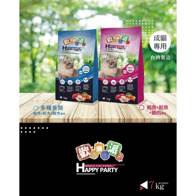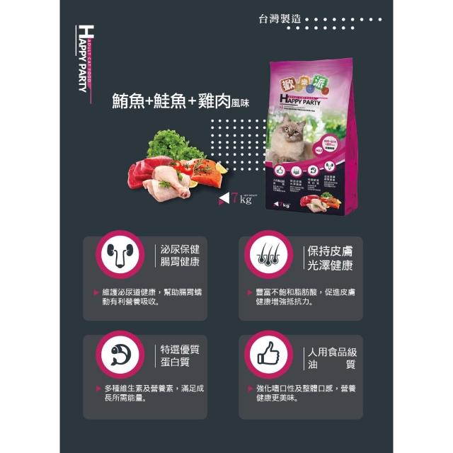 台灣製-貓飼料 歡樂派貓乾糧 / 鮪魚+鮭魚+雞肉 7kg