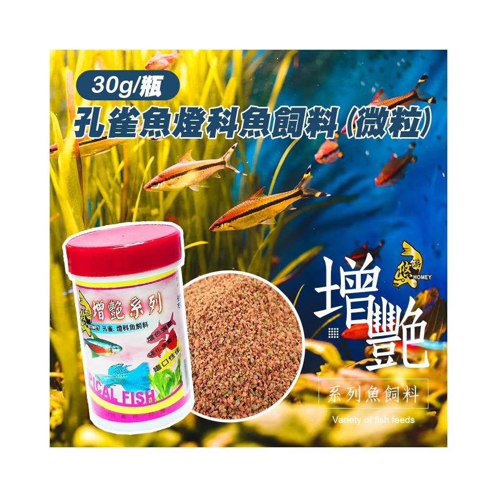 悠游增艷孔雀魚燈科魚飼料/(微粒)-30g 孔雀魚 燈科魚 小型魚 微顆粒 半浮水飼料 魚飼料 台灣製