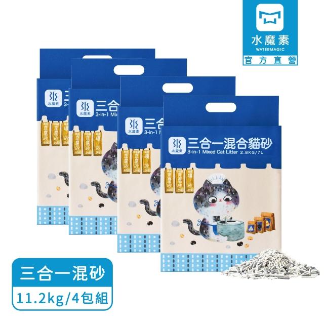 水魔素混合貓砂三合一活性碳豆腐混礦砂4包組(40%純豆腐砂、35%鈉基礦砂、25%活性碳豆腐砂)