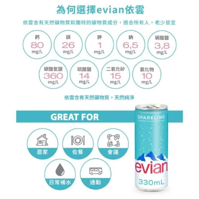 Evian 依雲法國evian依雲氣泡礦泉水330ml 鋁罐(公司貨) 單瓶