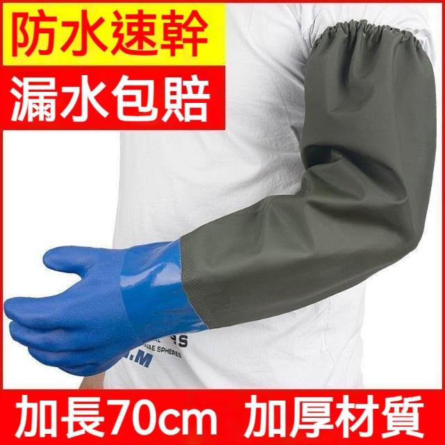 70cm加長袖套 防水手套 速乾 防水袖套 水產手套 抓魚專用 橡膠手套 防滑耐磨 工作手套