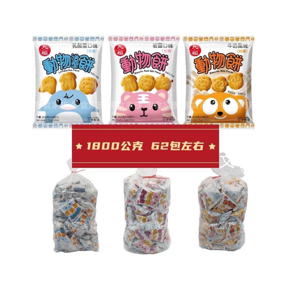 九福九福動物餅 量販包 1800公克(奶素餅乾 牛奶風味 岩鹽口味 乳酸菌口味 寶寶零食 小點心)