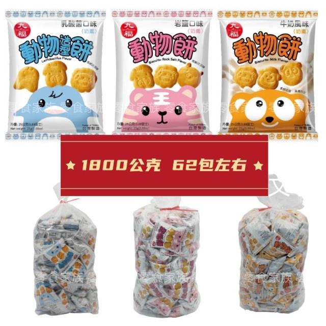 九福九福動物餅 量販包 1800公克(奶素餅乾 牛奶風味 岩鹽口味 乳酸菌口味 寶寶零食 小點心)