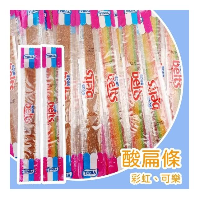口感爆炸酸條 VIDAL 彼糖樂 BELTS 酸扁條 酸扁帶 水果味五色酸扁帶軟糖 可樂味酸扁帶軟糖 異國零食 派對零食