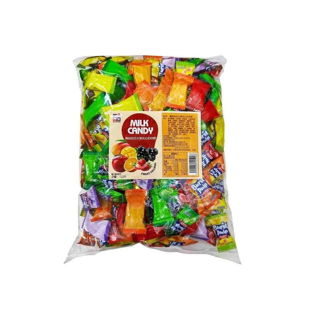 繽紛綜合水果夾心奶味糖一公斤(零食 水果軟糖 爆漿軟糖 夾心奶味糖 古早味零食 MILK CANDY 糖果 零嘴)