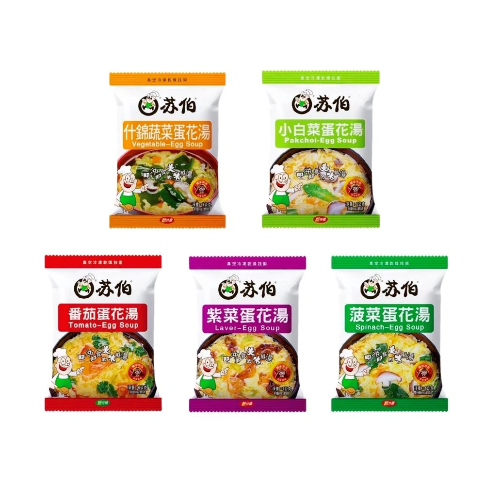 蘇伯蘇伯蛋花湯 即食湯塊 宵夜必備 低卡湯品 低熱量 什錦蔬菜 小白菜 番茄 紫菜 菠菜