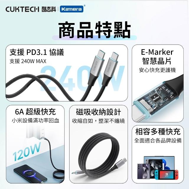 CUKTECH 酷態科 編織磁吸數據線 6A TYPE-C 240W E-Marker晶片PD快充線 自捲快充線