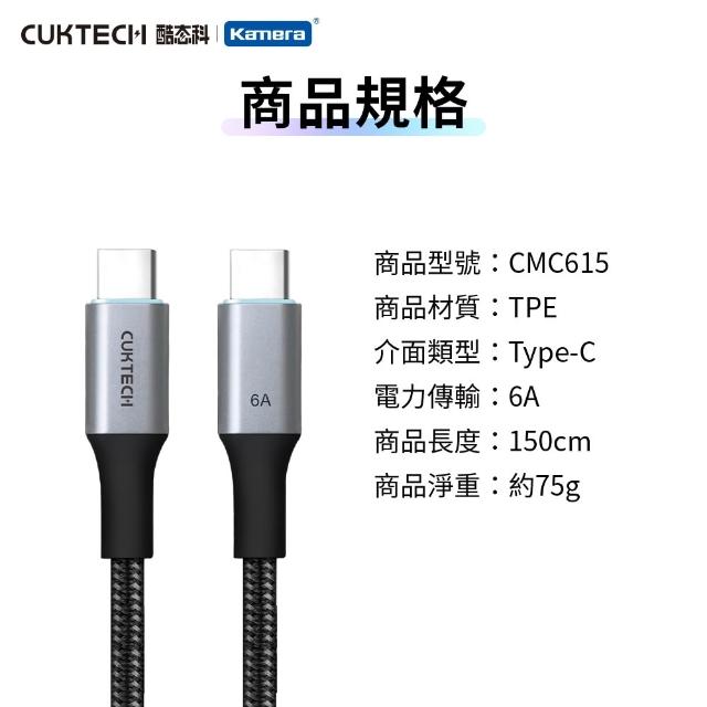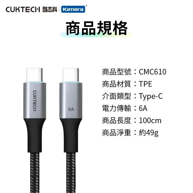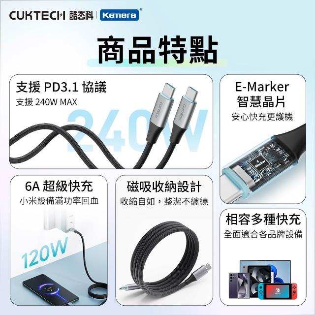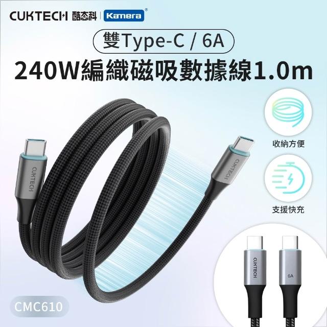 CUKTECH 酷態科 TYPE-C 240W 編織磁吸數據線 6A E-Marker晶片PD快充線 自捲快充線