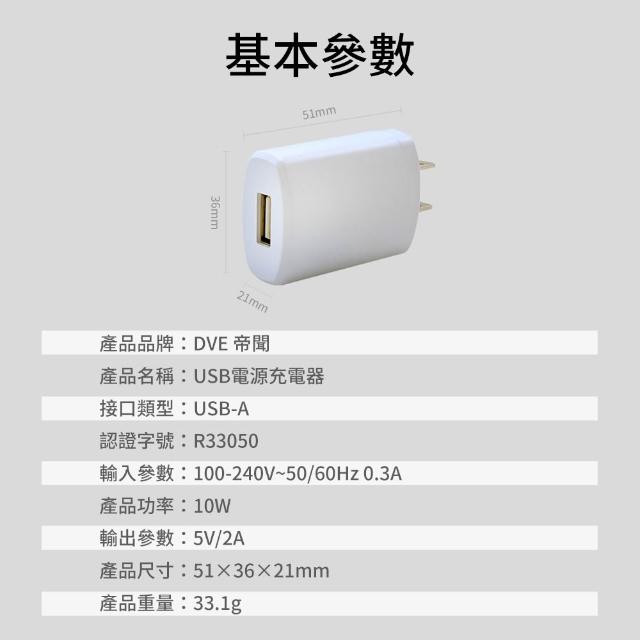 DVE 帝聞 5V/2A USB電源供應器 USB充電器 充電器 手機充電器