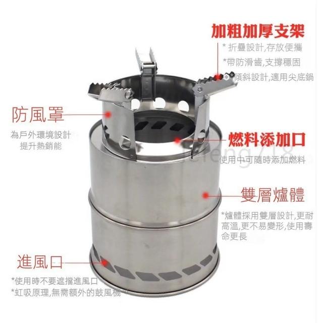 『現貨快速出』戶外無煙柴火爐 不鏽鋼木柴爐 火箭爐 焚火台 酒精爐 露營便攜可拆卸式燒烤爐 不鏽鋼野營木材爐 火爐