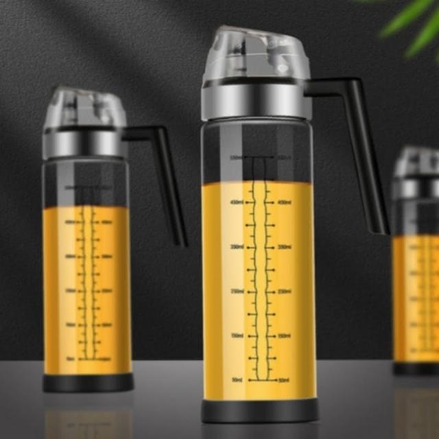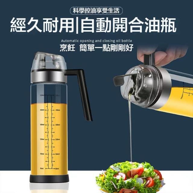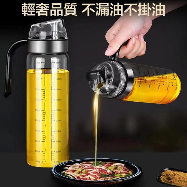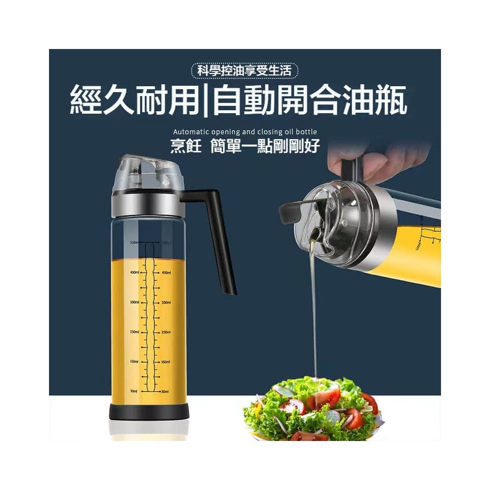『現貨快速出』廚房用油壺 500ml 自動開合油壺 玻璃帶刻度 醬油醋瓶 家用油瓶 廚房用品 旗艦品