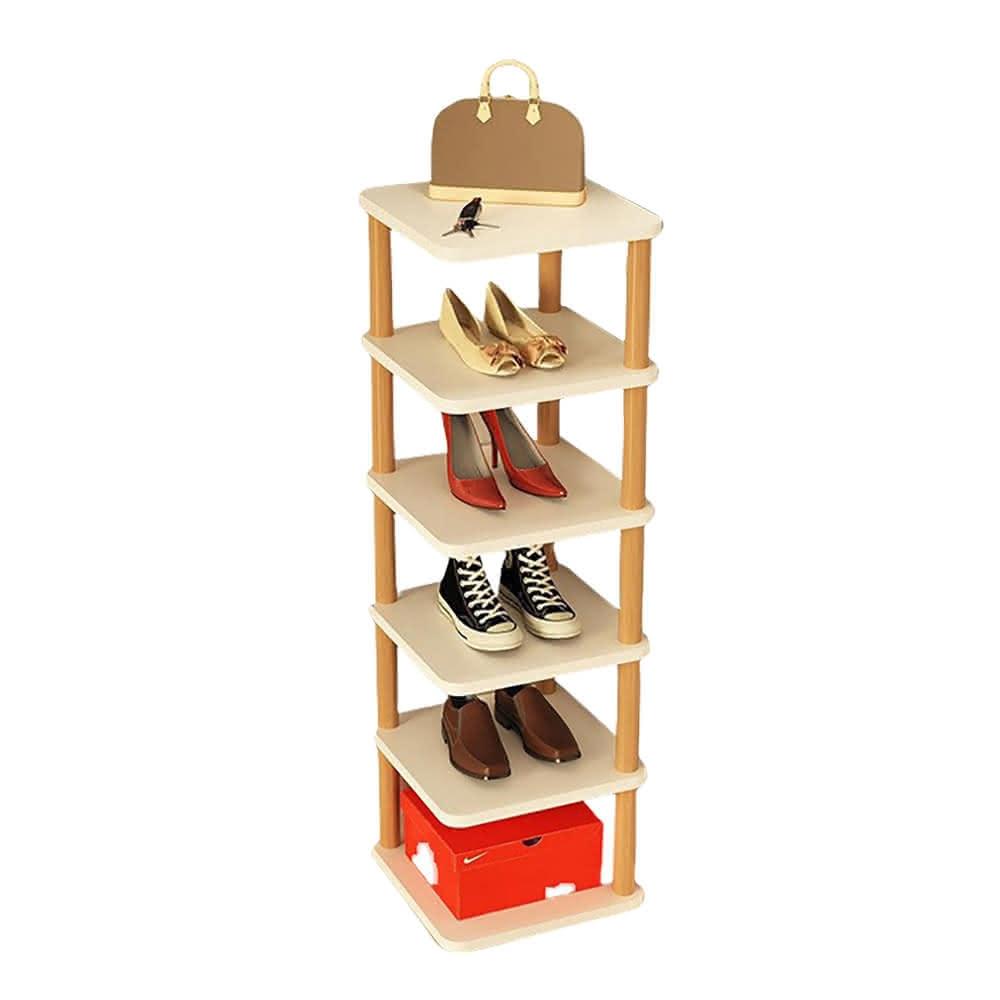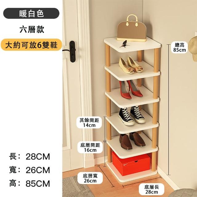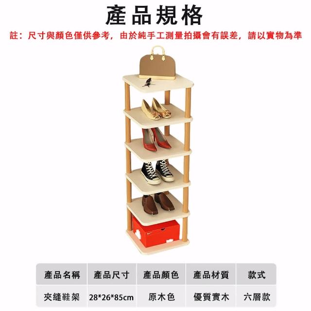 samedream 鞋架 多層門口鞋架 小型墻角夾縫簡易鞋櫃 家用簡約入戶收納鞋架 簡易安裝實木鞋櫃(加高層距 穩定性強 六層28*26*85CM)