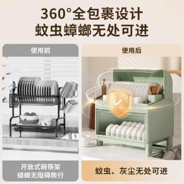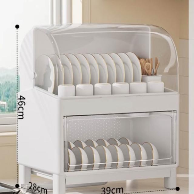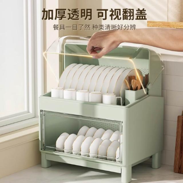 享家家居廚房碗架 碗筷收納盒 帶蓋放餐具裝碗箱 碟盤瀝水置物架 塑料碗櫃家用