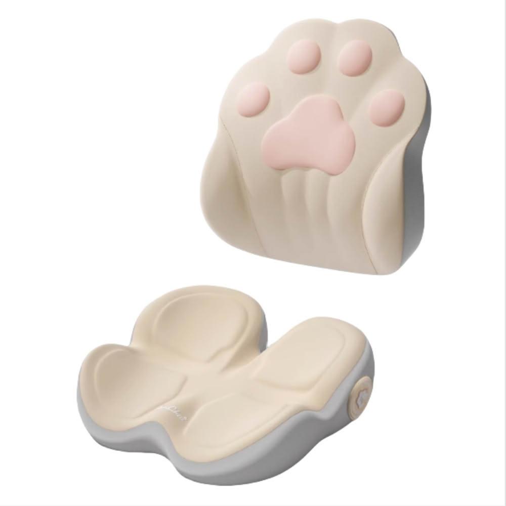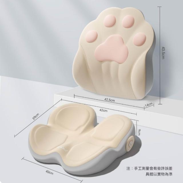 TAMZU 潭祖汽車坐墊 女生駕駛座增高屁墊 辦公室靠枕腰墊 椅子腰托 貓爪護腰護臀墊子(腰靠+坐墊)