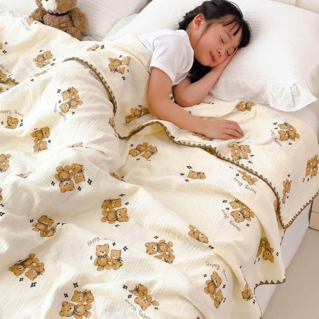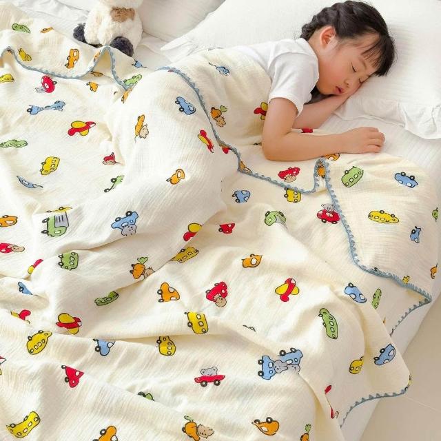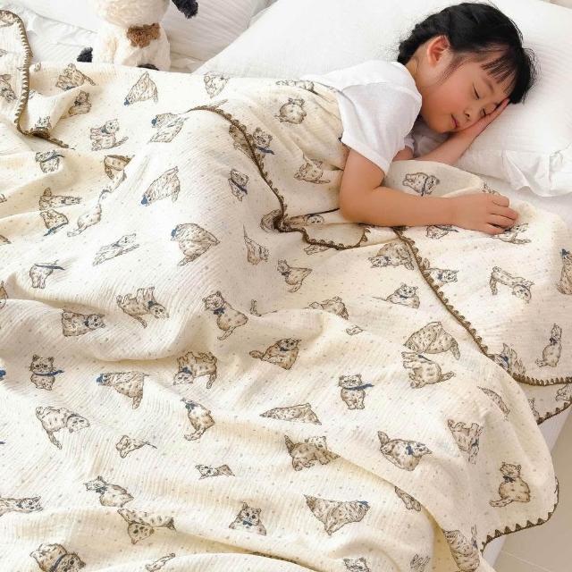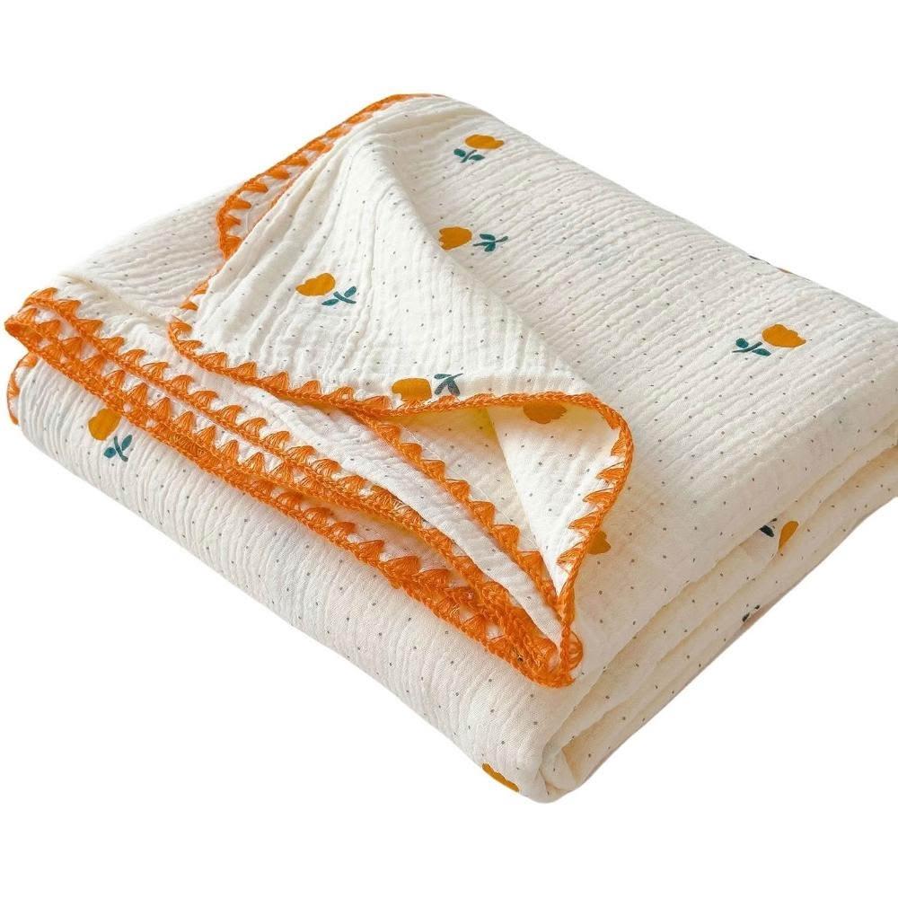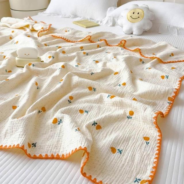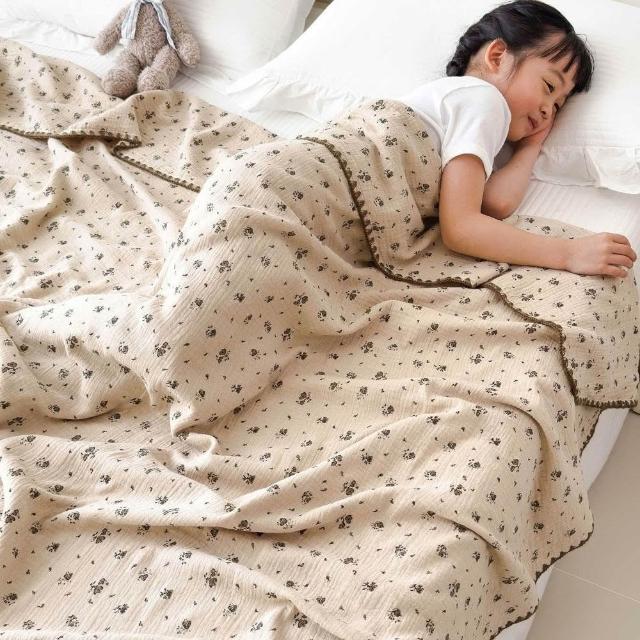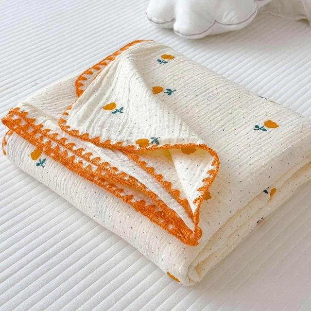 享家家居小清新全棉皺皺紗毛毯 幼兒園午睡毯 純棉沙發披肩蓋毯 夏季空調毯子