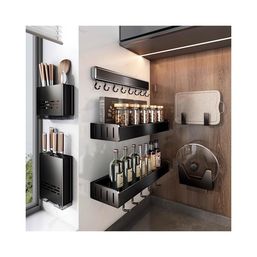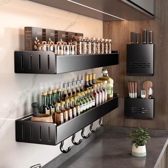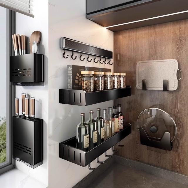 享家家居廚房置物架 壁挂免打孔 家用調料用品收納架 菜板筷子刀瀝水收納架子
