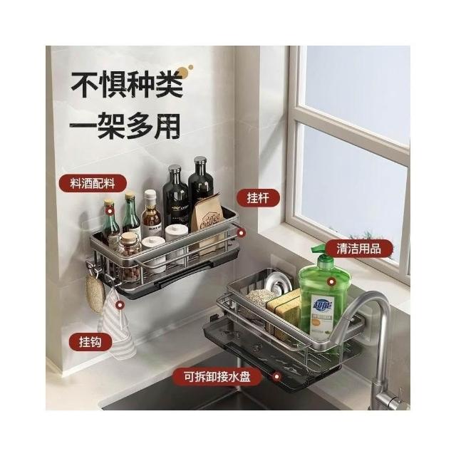 享家家居廚房收納置物架 抹布架 免打孔壁挂式 水池海綿洗碗布瀝水籃 水槽神器