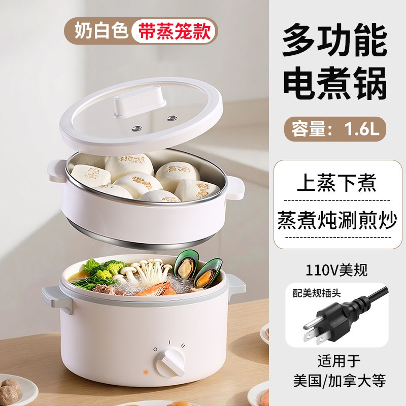 多功能電煮鍋 學生宿舍小電鍋 泡面鍋 家用110V蒸煮鍋 電熱炒鍋 煎鍋 小火鍋 宿舍可用鍋 快煮鍋 電熱鍋 美食鍋