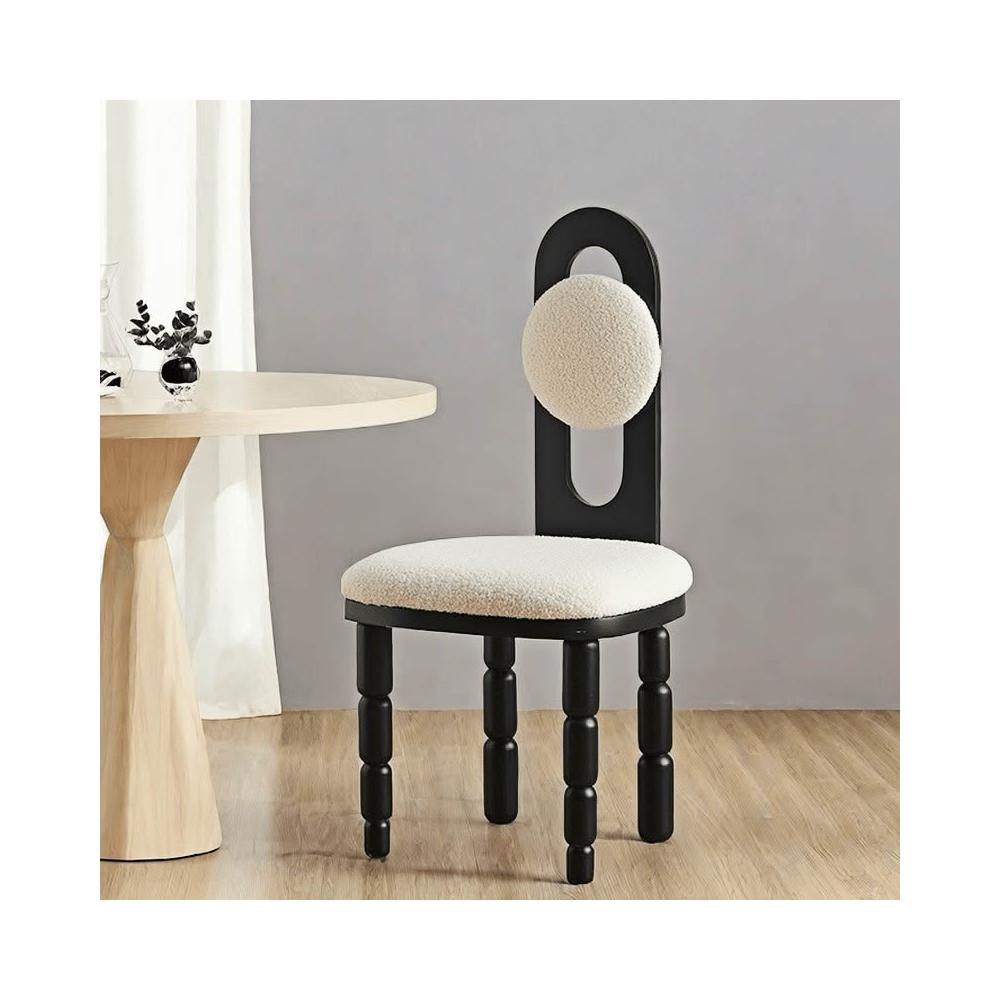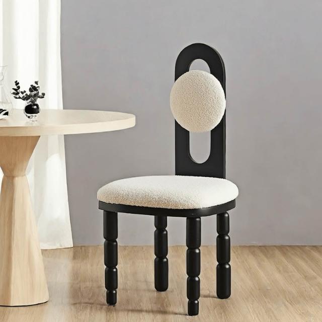 餐椅 中古風餐椅 靠背椅 餐椅法式復古風實木羊羔絨靠背中古風設計感師款奶油風高級感凳子