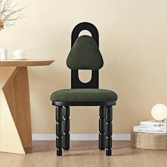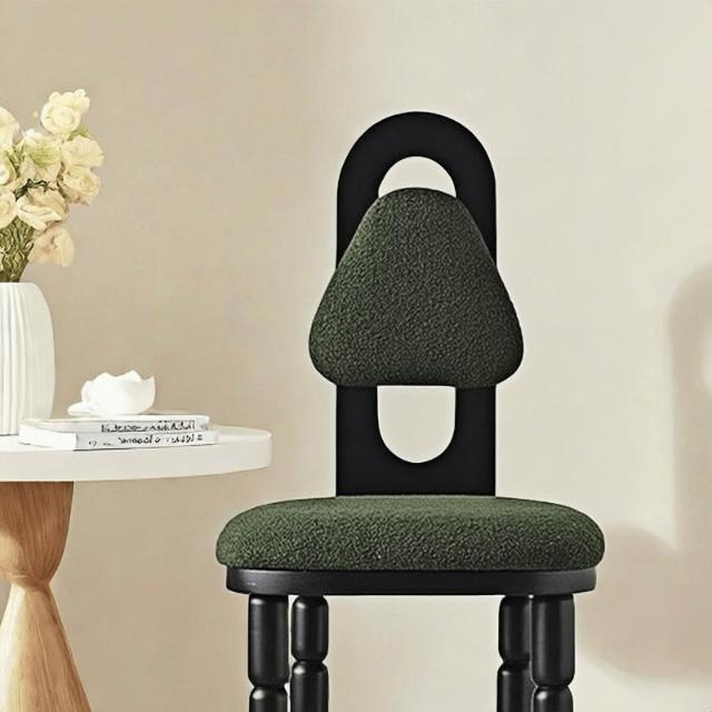 餐椅 中古風餐椅 靠背椅 餐椅法式復古風實木羊羔絨靠背中古風設計感師款奶油風高級感凳子