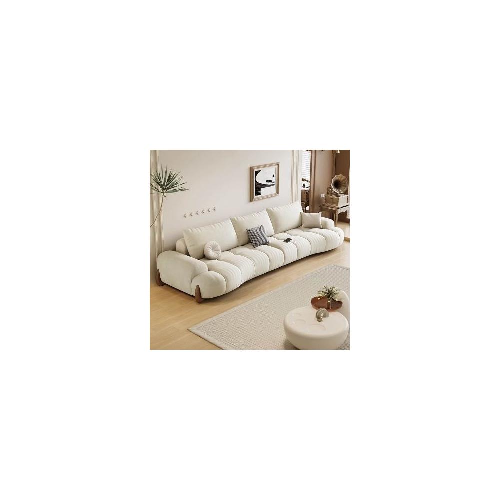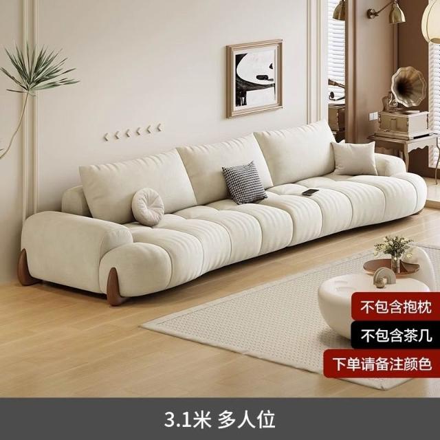 貓爪布沙發客廳新款小戶型現代簡約白色奶油風弧形貓抓皮沙發