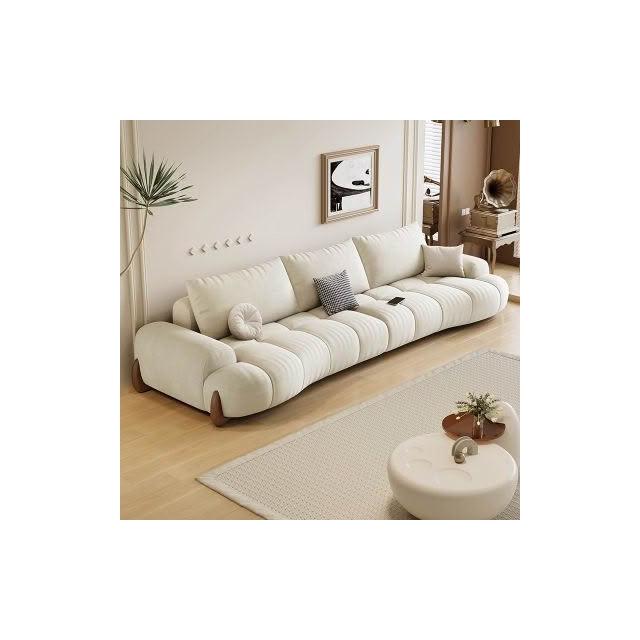 貓爪布沙發客廳新款小戶型現代簡約白色奶油風弧形貓抓皮沙發