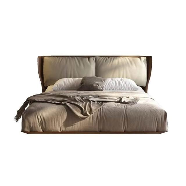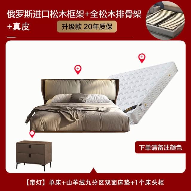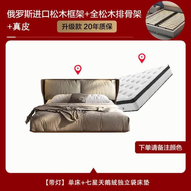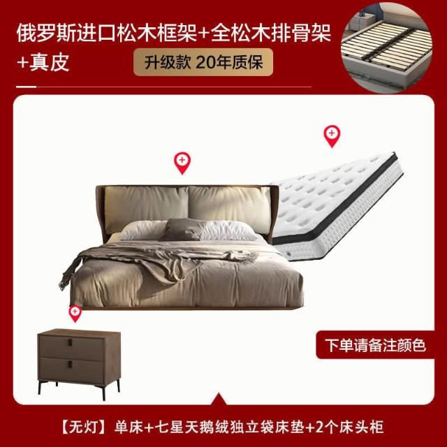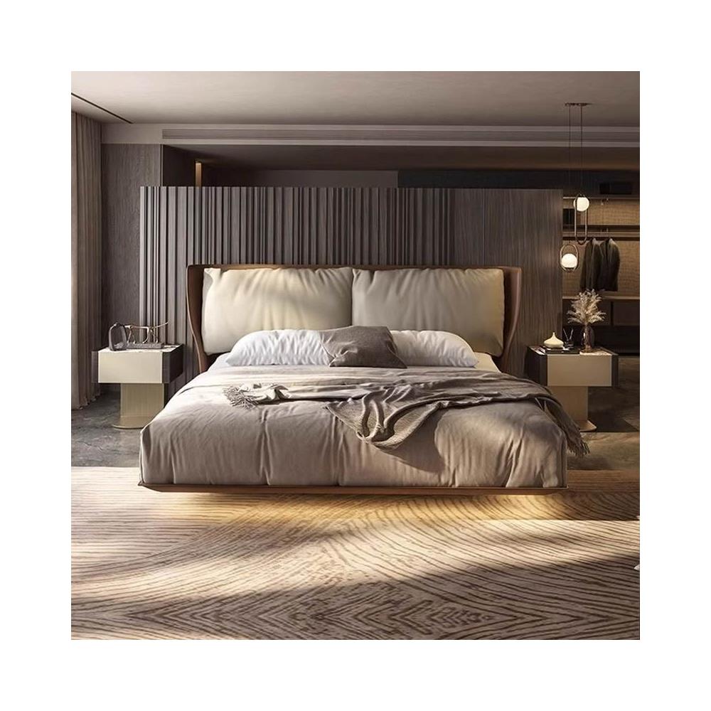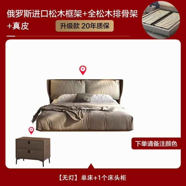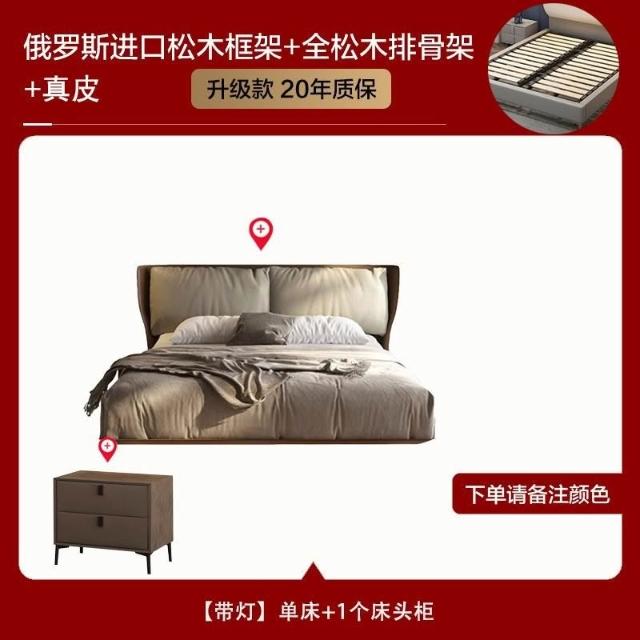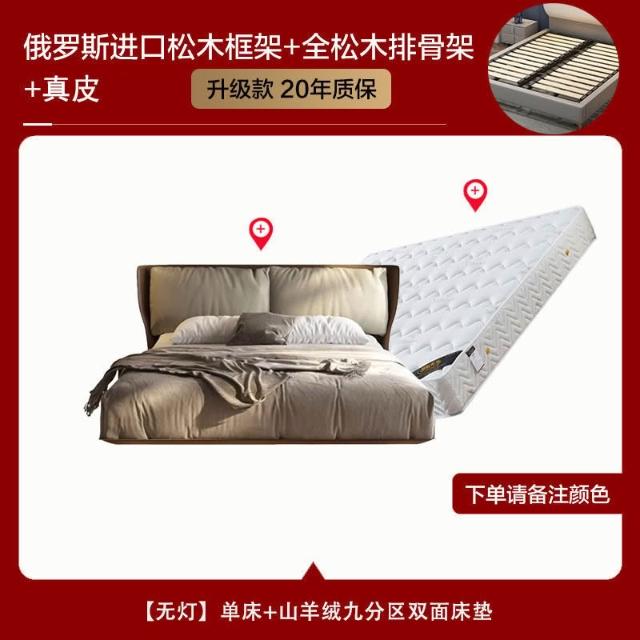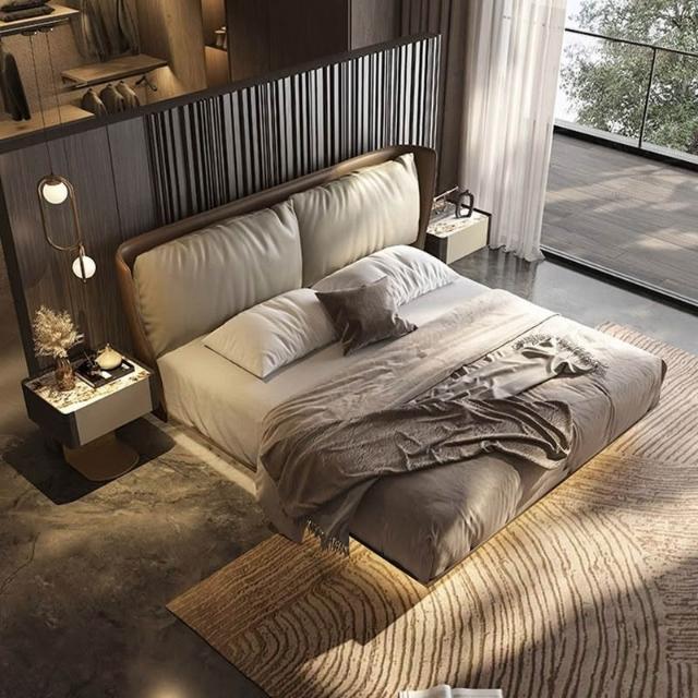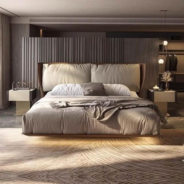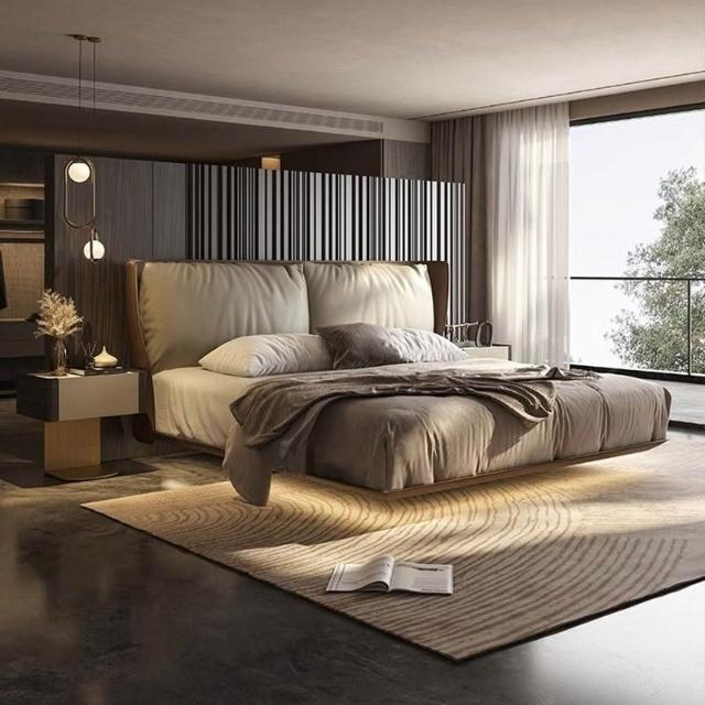 懸浮床現代簡約真皮床主臥高端大氣齊邊軟包床意式極簡輕奢懸空床