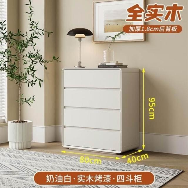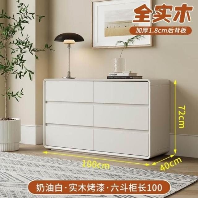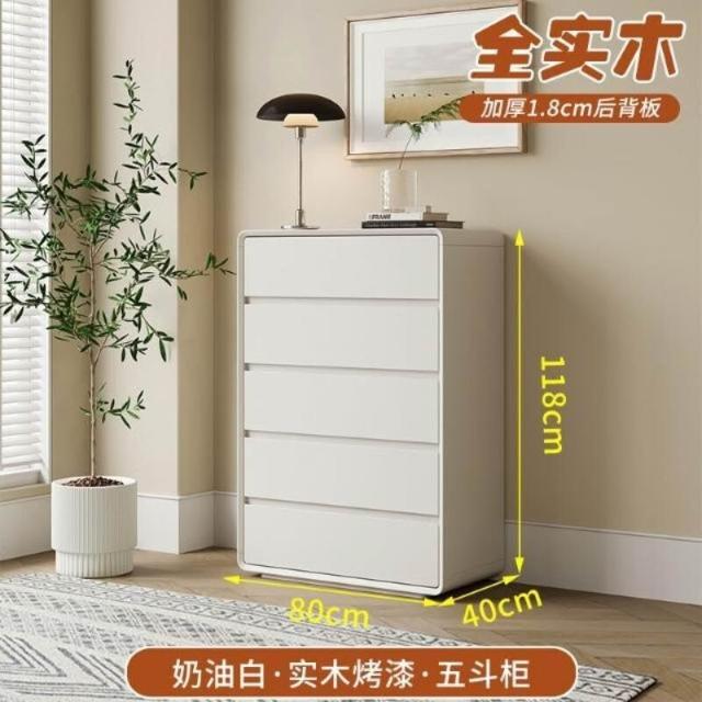 實木烤漆五斗櫃奶油風臥室床尾櫃簡約收納櫃客廳靠牆抽屜櫃八鬥櫃