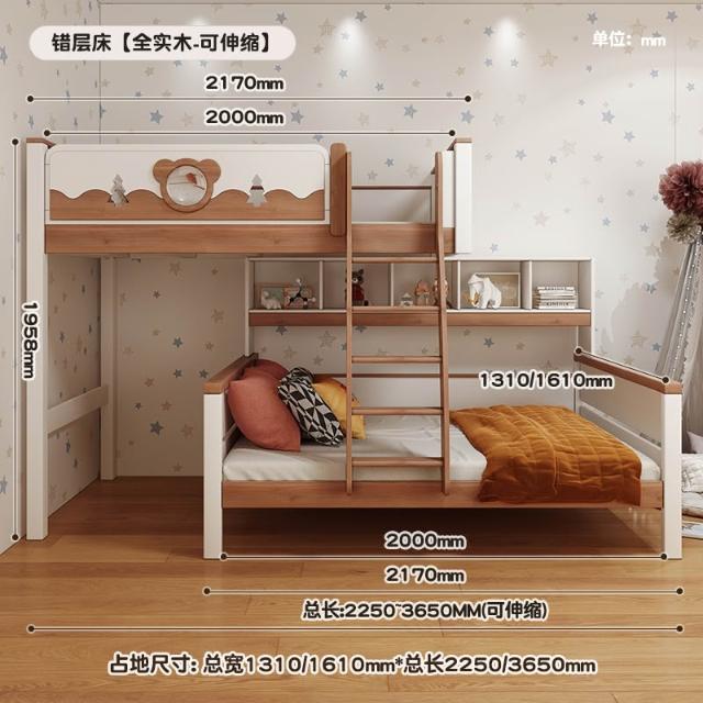 全實木錯位型上下床兒童雙層床交錯式小戶型錯層高低上下鋪組合床