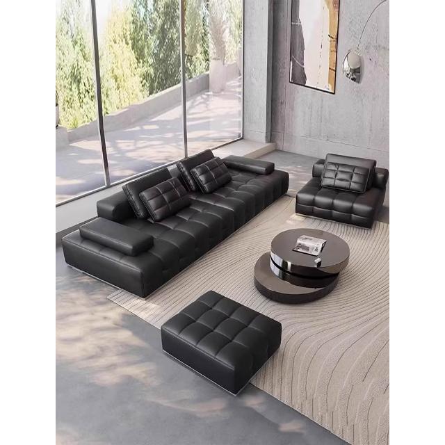 勞倫斯沙發意式極簡真皮客廳2025新款輕奢皮藝沙發直排沙發復古
