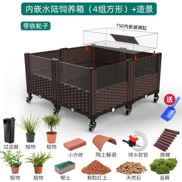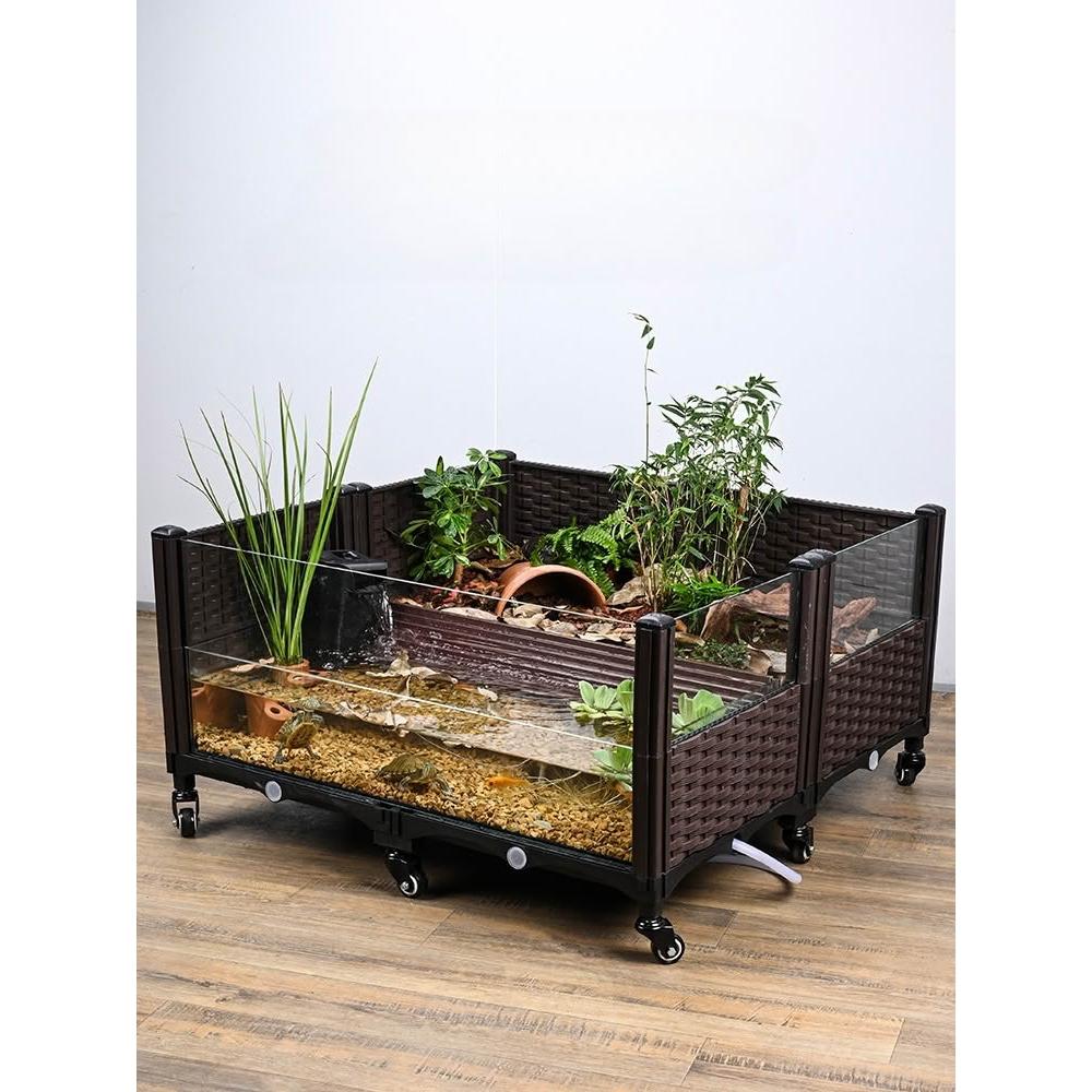 烏龜飼養缸水陸養龜養殖箱生態環境大號深水內嵌玻璃缸巴西草龜缸