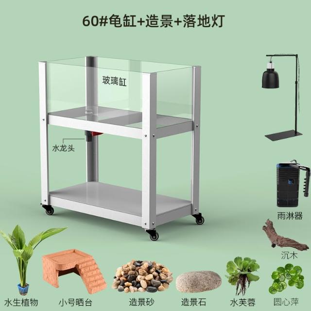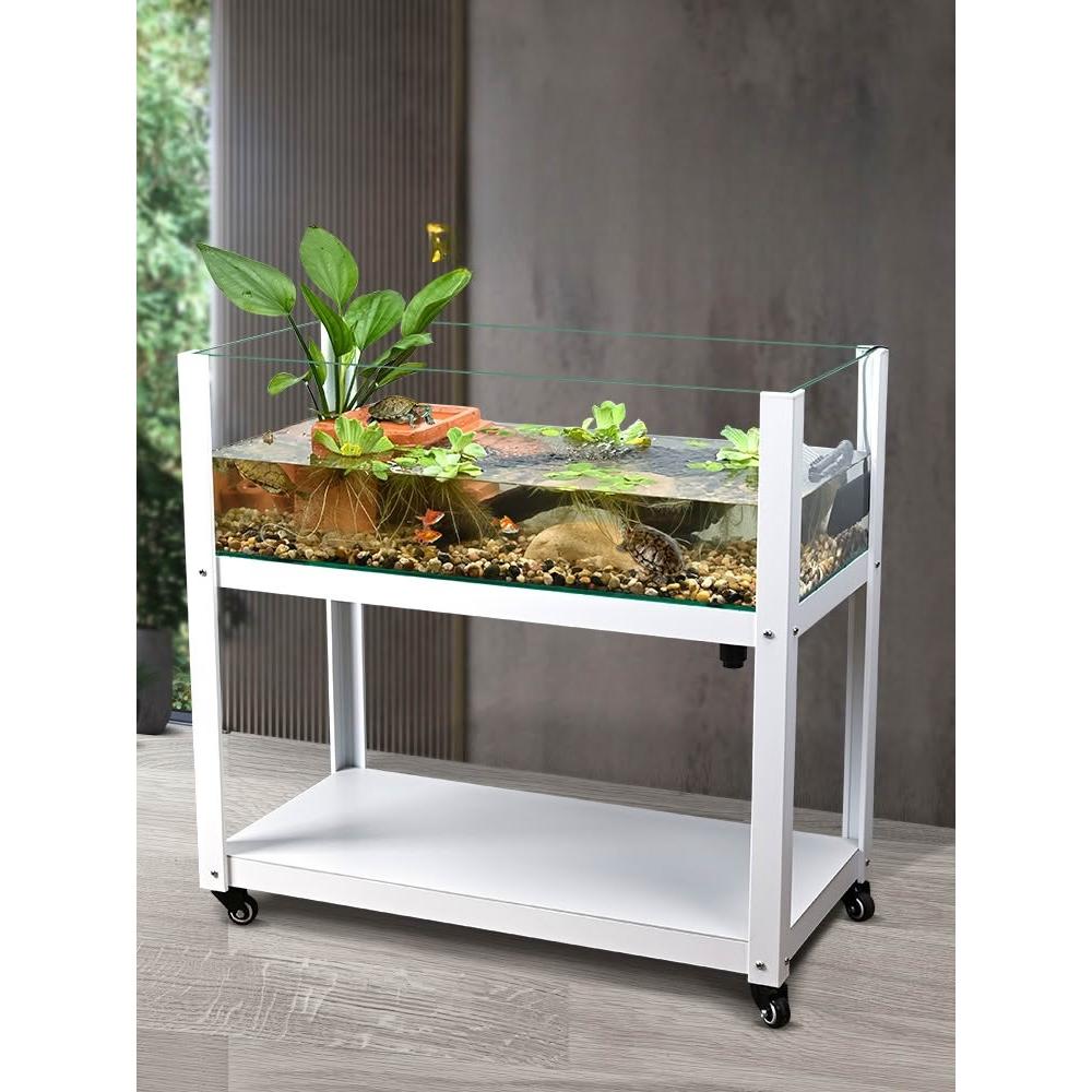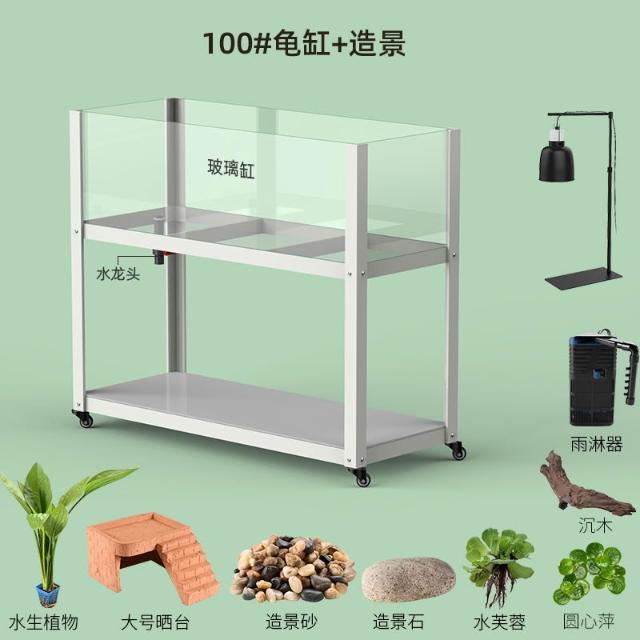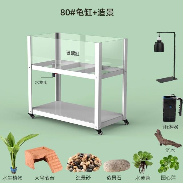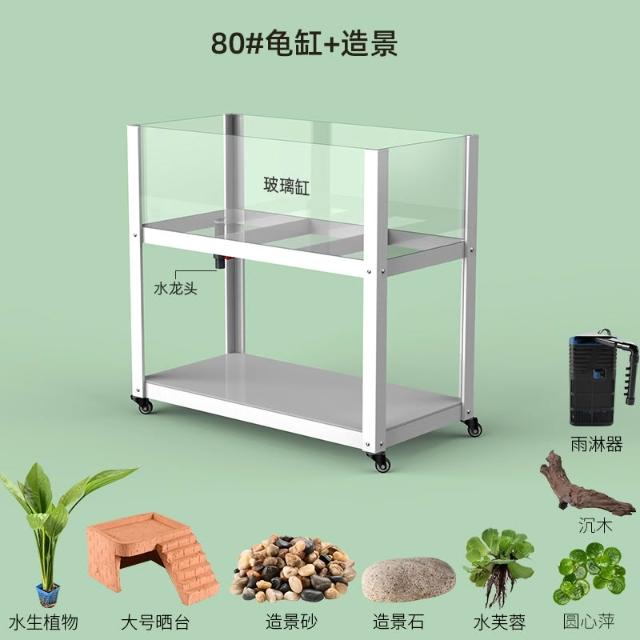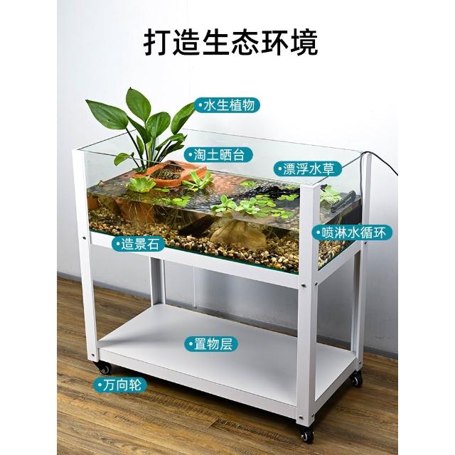 烏龜飼養缸帶曬臺大型生態造景箱養烏龜水陸缸玻璃帶排水鋁合金架