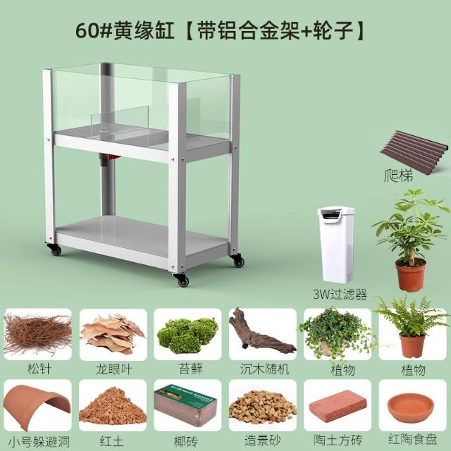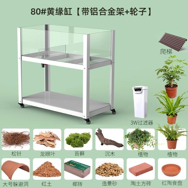 黃緣半水龜玻璃缸鋁合金支架可移動烏龜生態造景專用水陸缸特大號