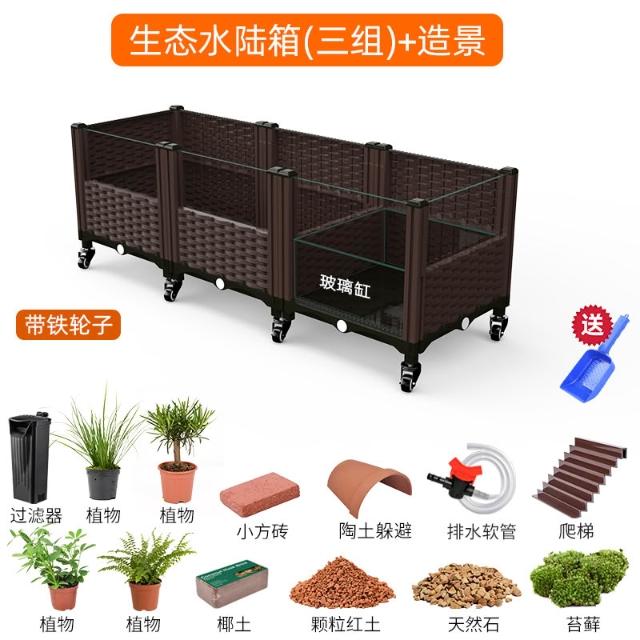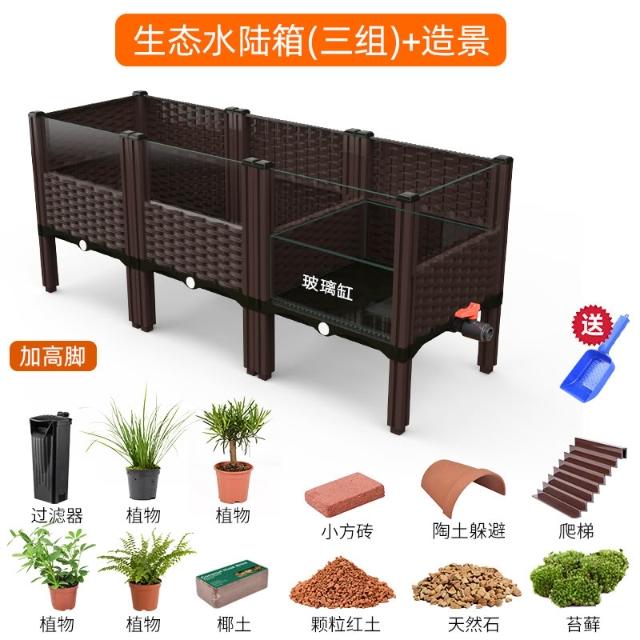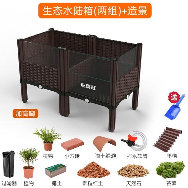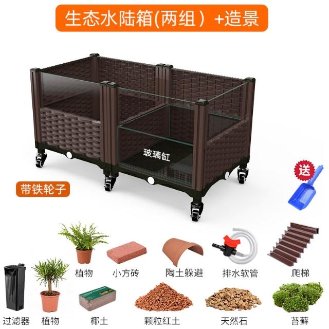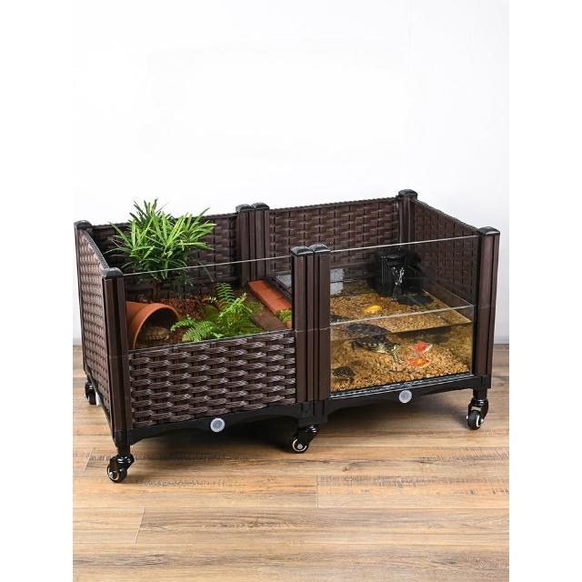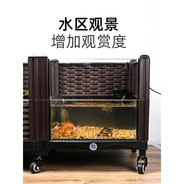烏龜水陸飼養缸養龜水箱生態環境養殖內嵌內置玻璃缸巴西草龜深水