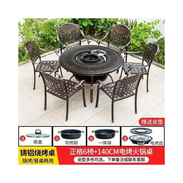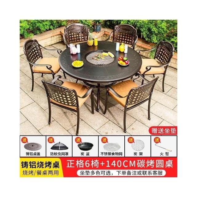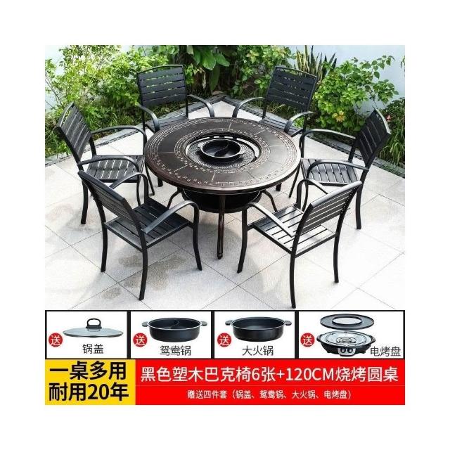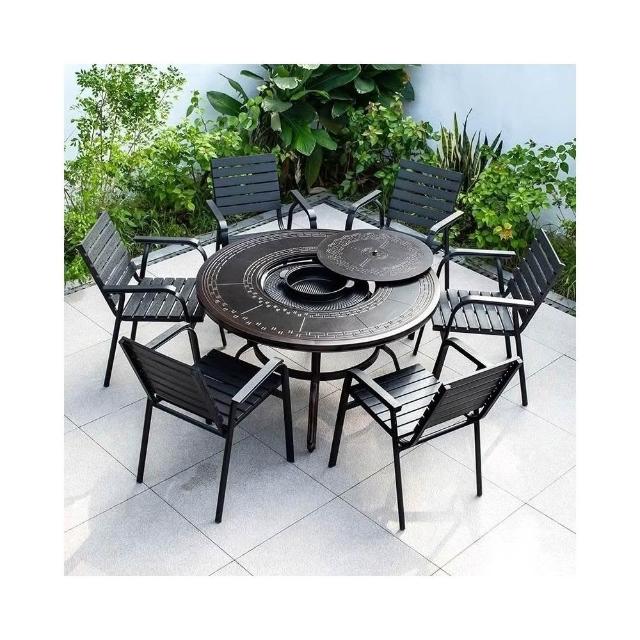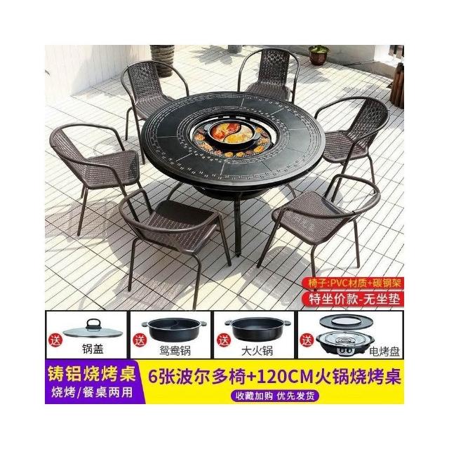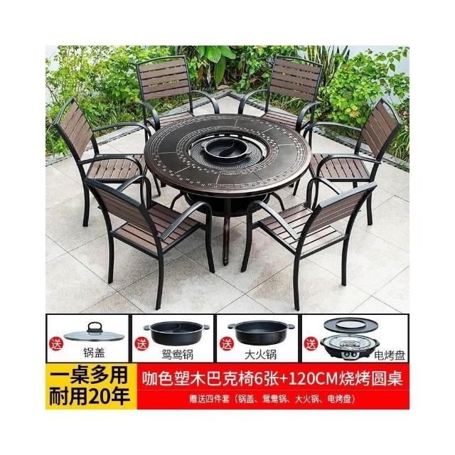 戶外桌椅 休閒桌椅 庭院桌椅 戶外燒烤桌椅多功能家用一體圓形折疊無煙旋轉兩用韓式火鍋桌