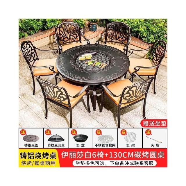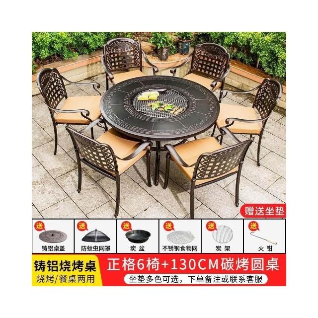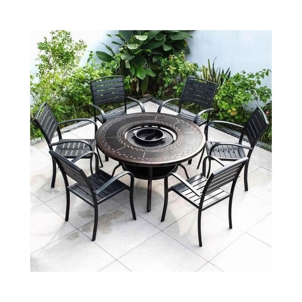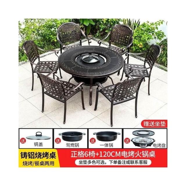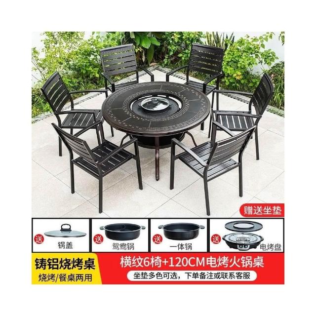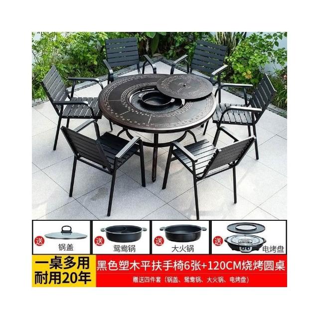 戶外桌椅 休閒桌椅 庭院桌椅 戶外燒烤桌椅多功能家用一體圓形折疊無煙旋轉兩用韓式火鍋桌