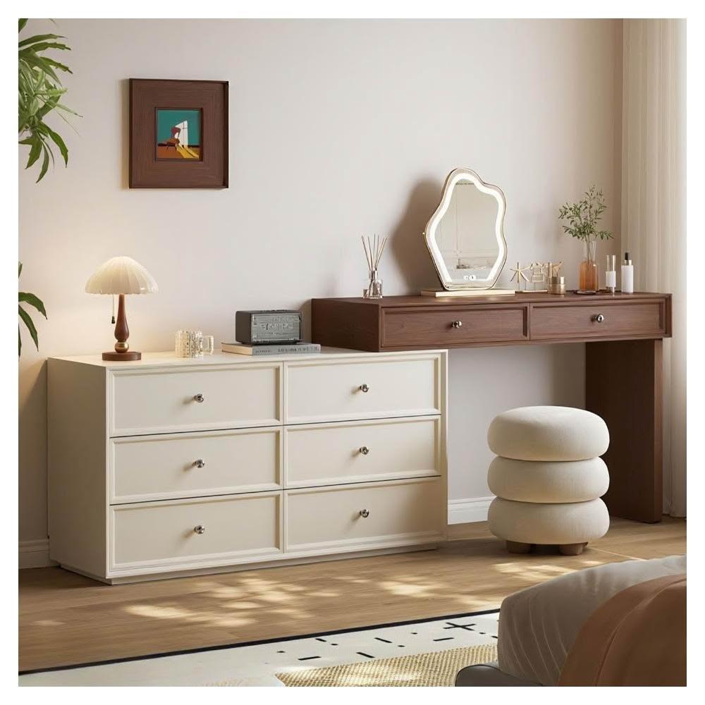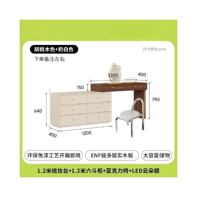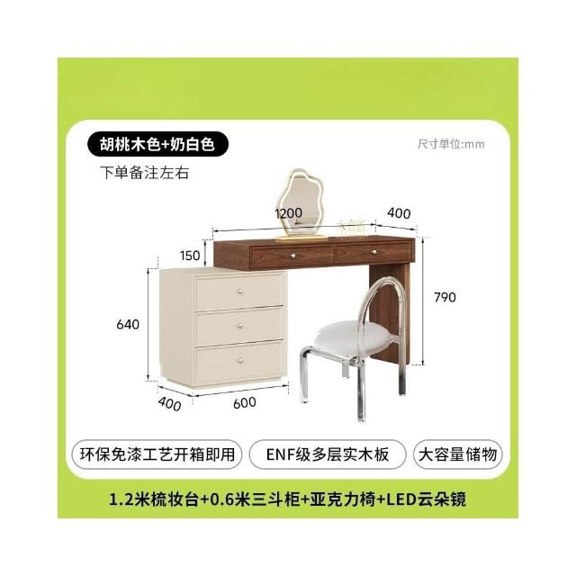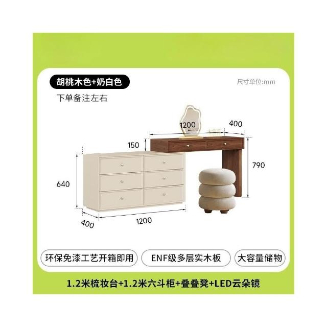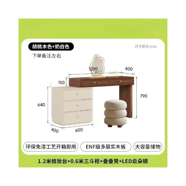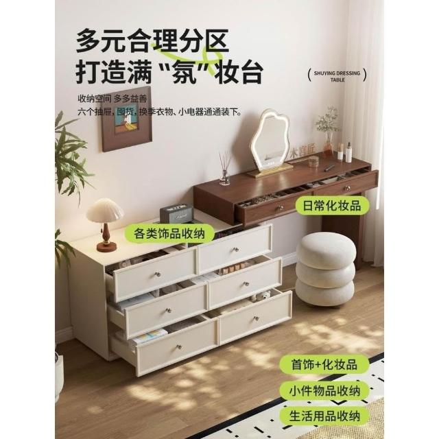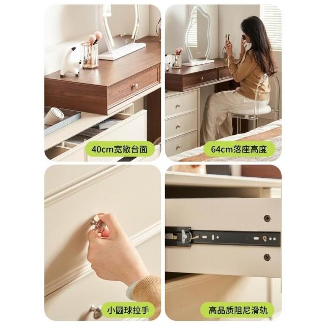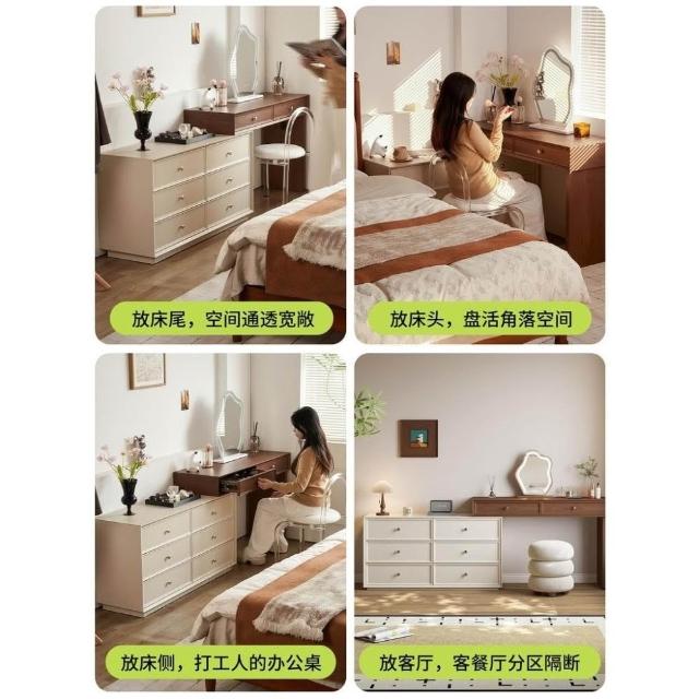 奶油風 梳妝台 化妝台 化妝桌 實木梳妝台臥室簡約2025新款收納櫃床尾伸縮化妝桌
