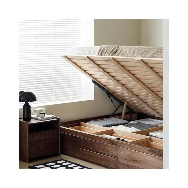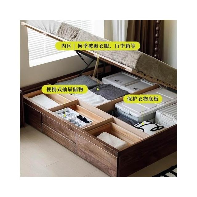 免運保固 北美黑胡桃木儲物床無床頭全實木高箱側翻床氣壓小戶型收納榻榻米