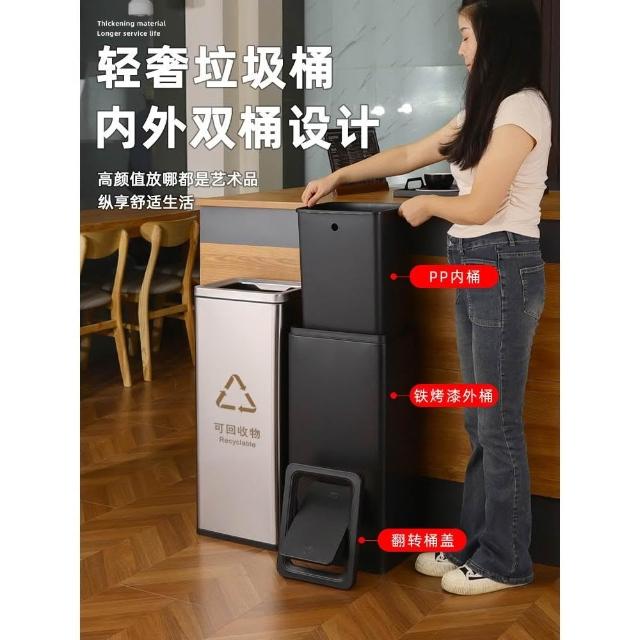商用不銹鋼翻蓋垃圾桶辦公室雙層廢紙桶衛生間擦手紙收納桶搖蓋式