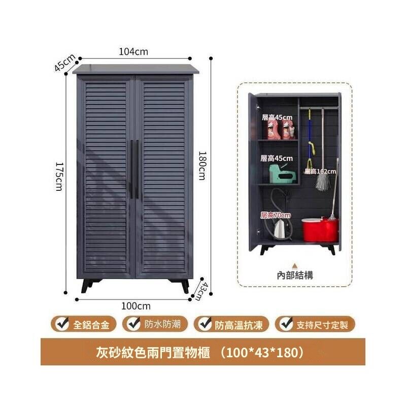 現貨速發 免運 鋁合金戶外工具儲物櫃清潔衛生保潔櫃鐵鍬漁具收納櫃室外防水防曬