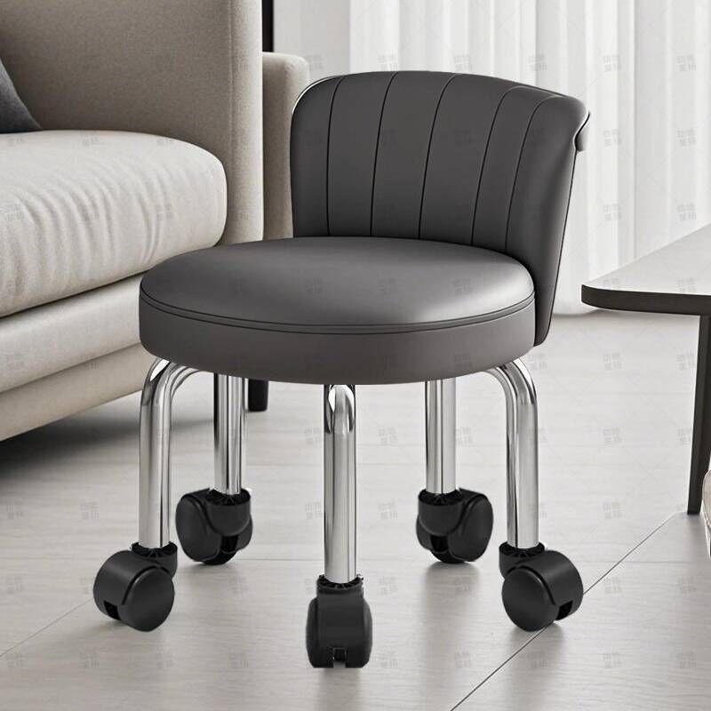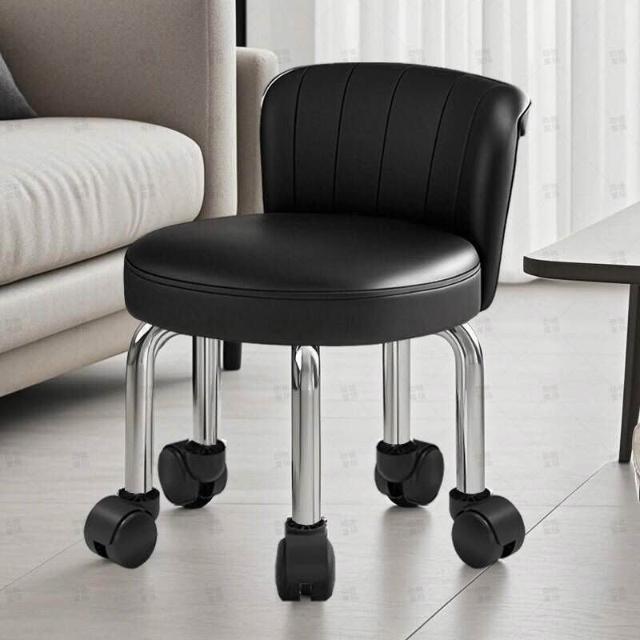 矮凳靜音萬向輪旋轉小凳子成人帶滑輪靠背矮凳移動板凳客廳換鞋凳